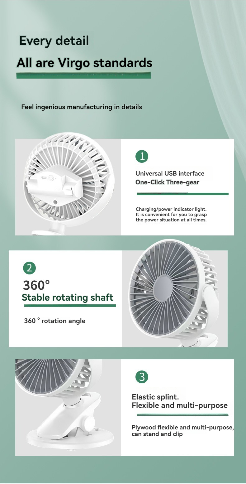 Ultra Quiet Clip On Fan With 360 Degree Rotation, USB Rechargeable Portable Personal Fan For Desk, Bed, Dorm, Treadmill And Indoor Outdoor Use